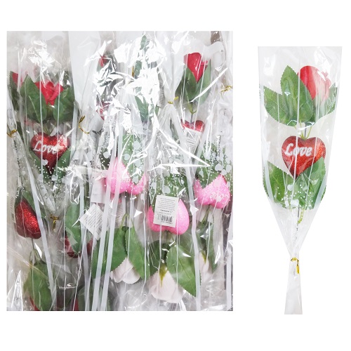 Rose & Heart Long Stem Asst Clrs