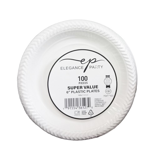 Plates Plastic 6in 100ct White
