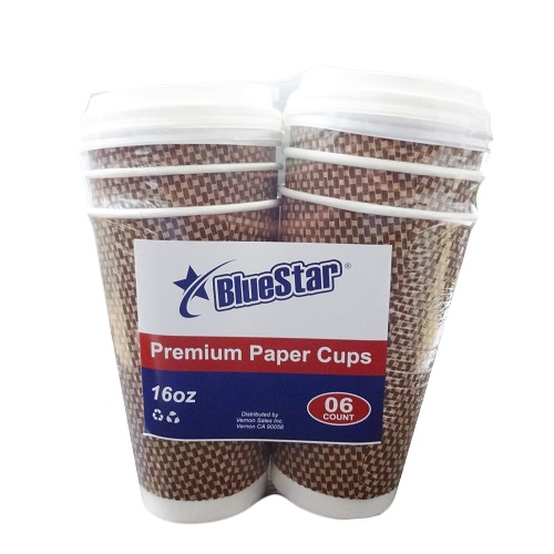 Blue Star Paper Cups 16oz 6ct W-Lid