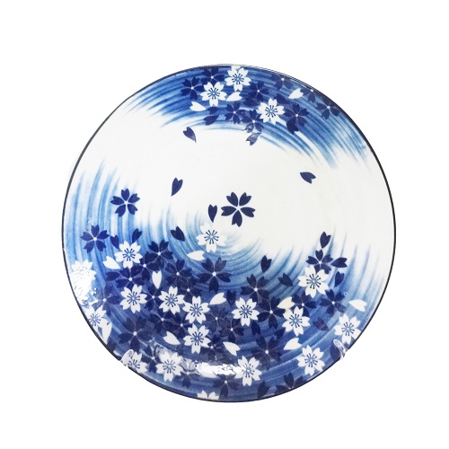 Plate Ceramic Moon D. Blue Flower 10.5in